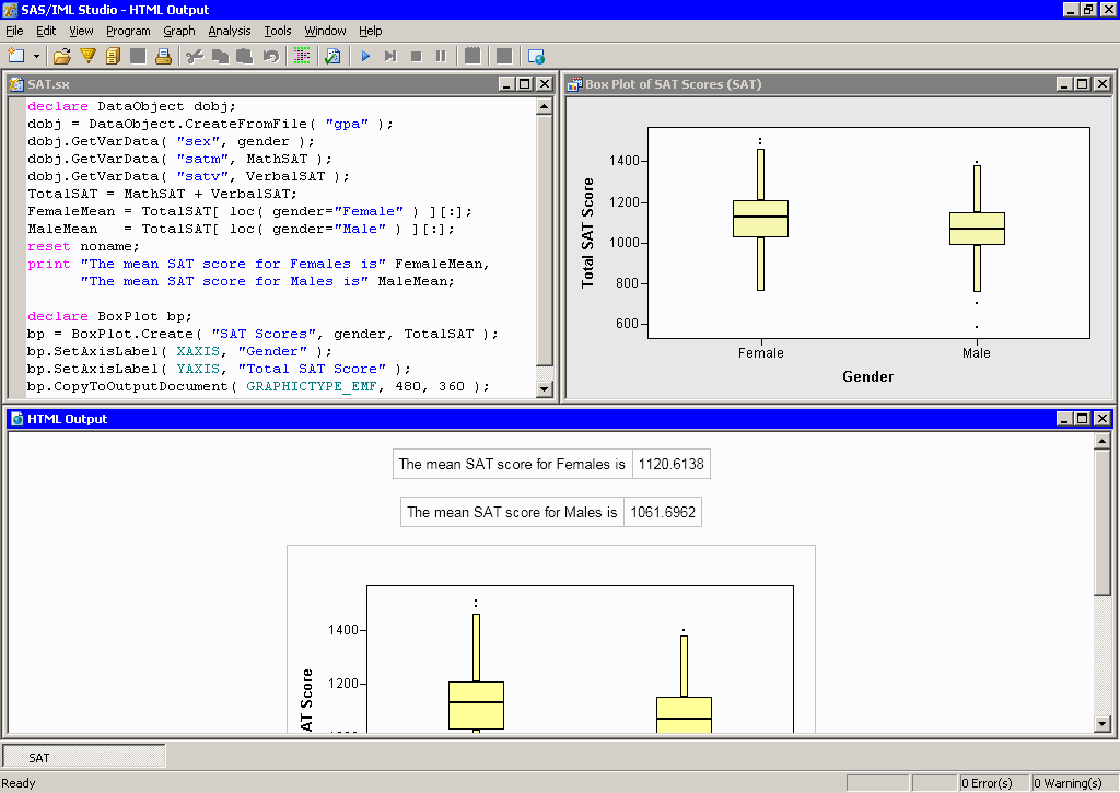 The output from an IML program is displayed in an HTML Output window. This window displays all ODS output generated by a program.