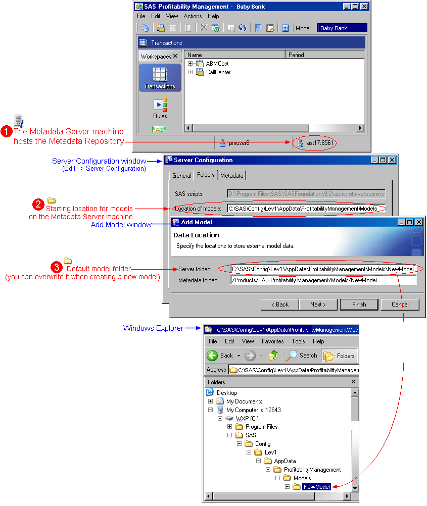 - When you create a new model, SAS Profitability Management appends, to the location of models, the model name as the default name for the model's server folder. You can overwrite the default name.
