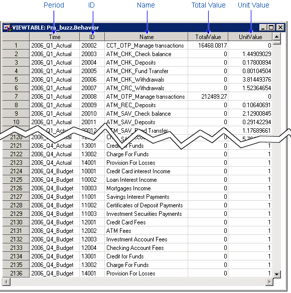 The behavior table lists each source item, with its value, of a transaction cost. Each row in a behavior table: