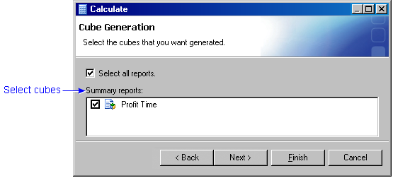 Select the cubes to generate, or check Select all reports, and then click Next.