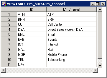 A custom dimensions table defines the dimensions of a transaction. A definition table must be loaded for each dimension that will be used in the model and in the transaction tables. A custom dimensions table contains the following columns with a maximum field length as noted: