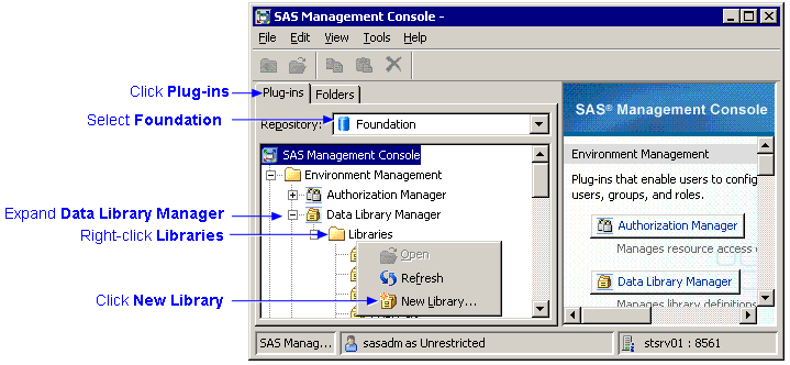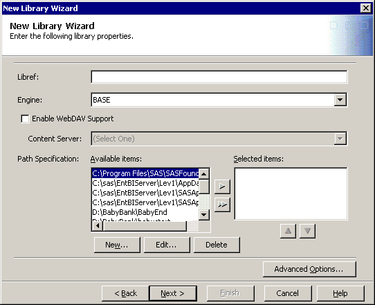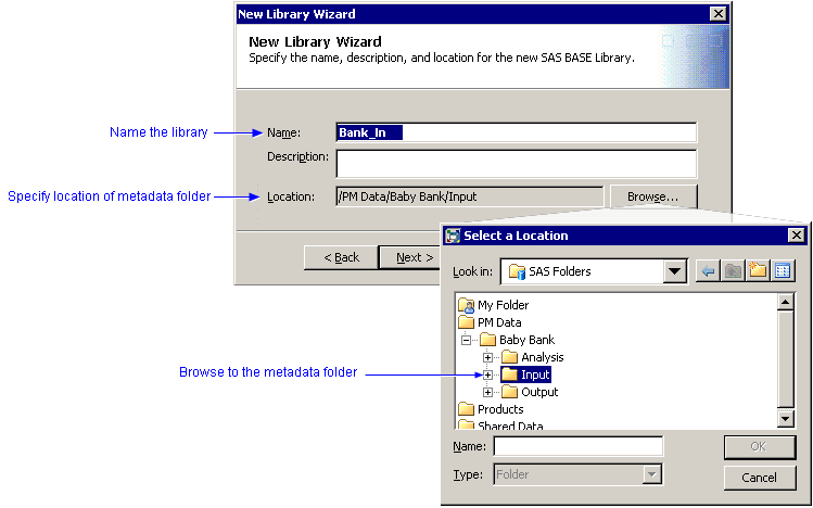 This is the text that appears in the navigation and display areas of SAS Management Console, but is not the LIBREF for the library. The name can contain up to 60 characters. It must be unique within the folder specified in the Location field. It must also be unique on all servers where the library is assigned.