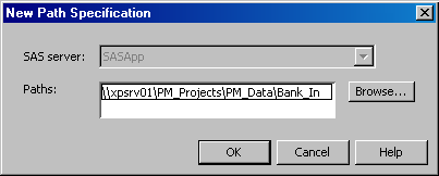 Note: If the path is on another server as shown, you can simply type the path in the New Path Specification window.