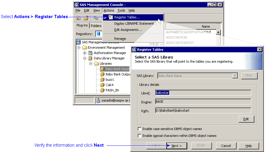these steps to identify the tables to SAS. And, if you modify the input tables