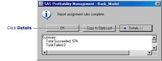 - Click Details to verify that the import succeeded, and click OK.