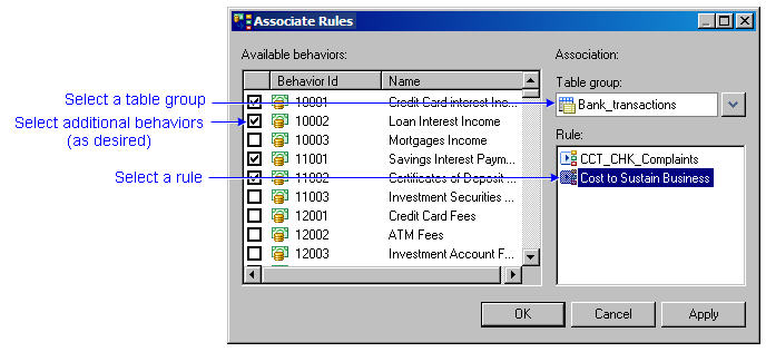 6. Select a rule to associate with the selected behaviors .