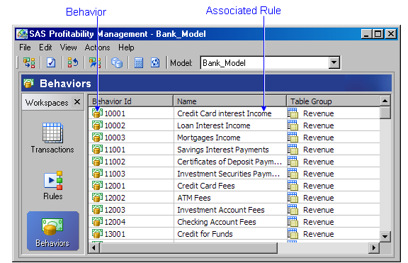 The associated rules display in the Behaviors workspace.