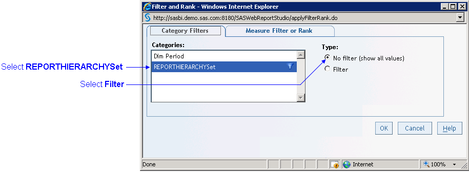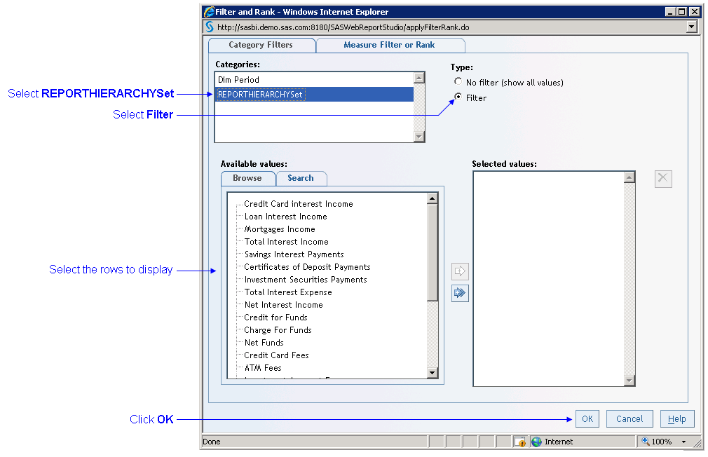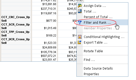 Right-click the numeric columns in a report and select Filter and Rank from the drop-down menu.
