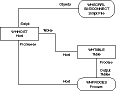 This diagram shows the overall process flow, as well as any relationships that might be specific to the WHPRCMAN type objects. Note that for simplicity, the relationships have been drawn for only one of the WHPRCMAN type objects in the diagram, but these relationships exist for all WHPRCMAN type objects.