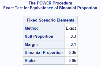 The following statements compute the sample size for this equivalence test: